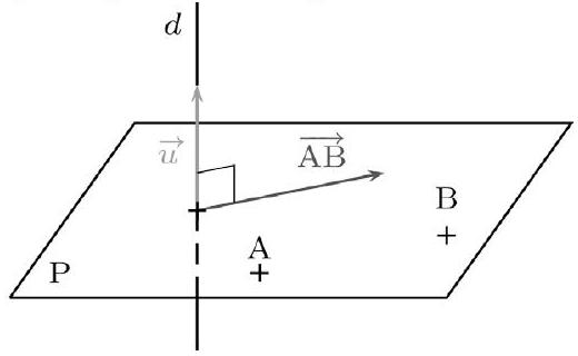 $d$ et P sont orthogonaux si et seulement si quels que soient les points A et B de P , on a $: \vec{u} \cdot \overrightarrow{A B}=0$.