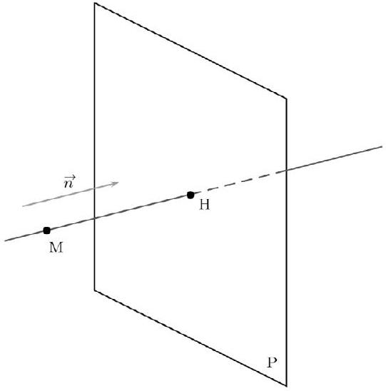 Soit M un point de l'espace. Soit $P$ un plan de vecteur normal $\vec{n}$. Le projeté orthogonal du point M sur le plan P est le point H si et seulement si H appartient à P et à la droite passant par M et de vecteur directeur $\vec{n}$.