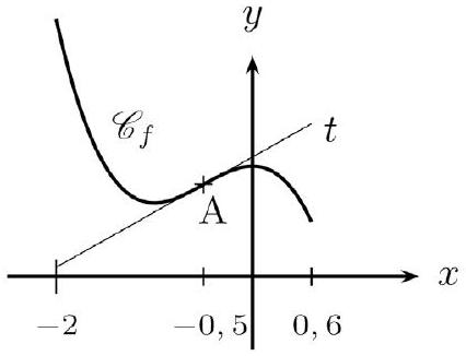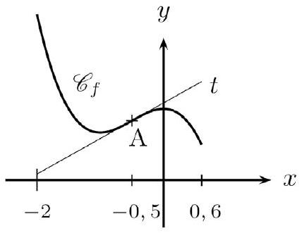 La tangente $t$ à $\mathrm{C}{f}$ en $-0,5$ traverse $\mathrm{C}{f}$.