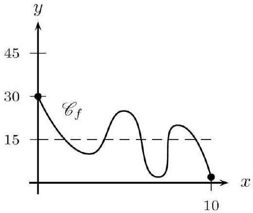 Figure 2 ci-après : L'équation $f(x)=15$ admet cinq solutions sur [ $0 ; 10$ ].