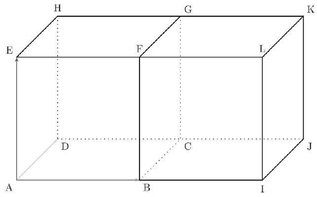 $\overrightarrow{A B}=\overrightarrow{B I}, \overrightarrow{A D}=\overrightarrow{I J}$ et $\overrightarrow{A E}=\overrightarrow{J K}$.