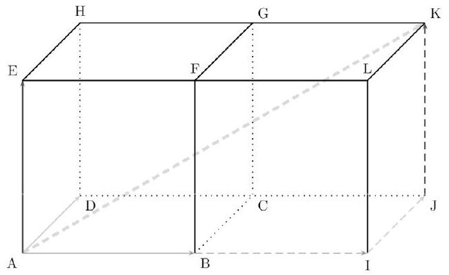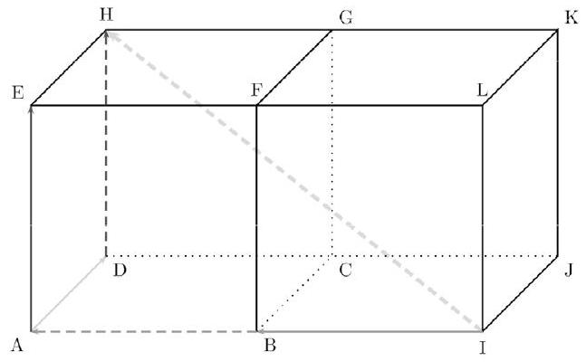 Aucune justification n'est demandée dans cet exercice. ABCDEFGH et BIJCFLKG sont deux cubes de même taille disposés côte à côte . Reproduire la figure donnée ci-après.