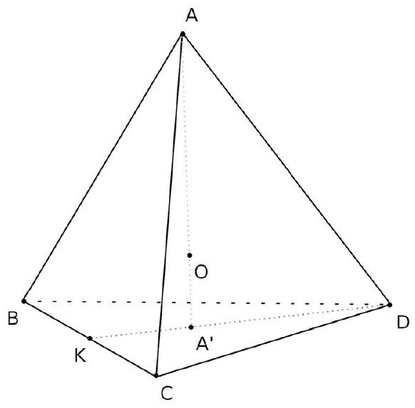 - Soit K le milieu de l'arête $[\mathrm{BC}]$.